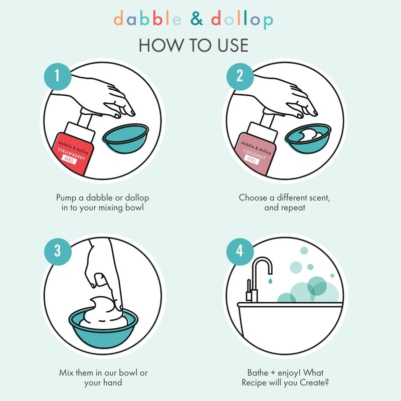 - SWEET SUMMER FRESHNESS. Dabble & Dollop's 3-in-1 Strawberry Bath Gel delivers the sweet freshness of Summer strawberries right to your tub. Our OG scent, this velvety gel can be used for a bubble bath, body wash, or shampoo.