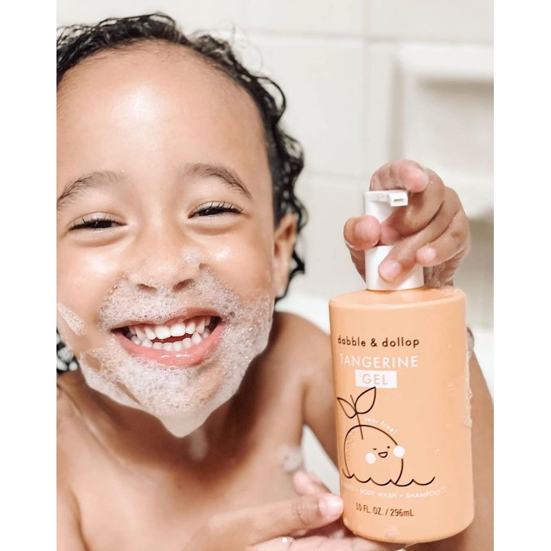 - ADD AN ORANGE POP. Dabble & Dollop's 3-in-1 Tangerine Bath Gel carries the fresh juicy tang of tangerine in every bubble. The brightness of citrus will light up the imaginations of your children. The velvety gel can be used for a bubble bath, body wash, or shampoo.