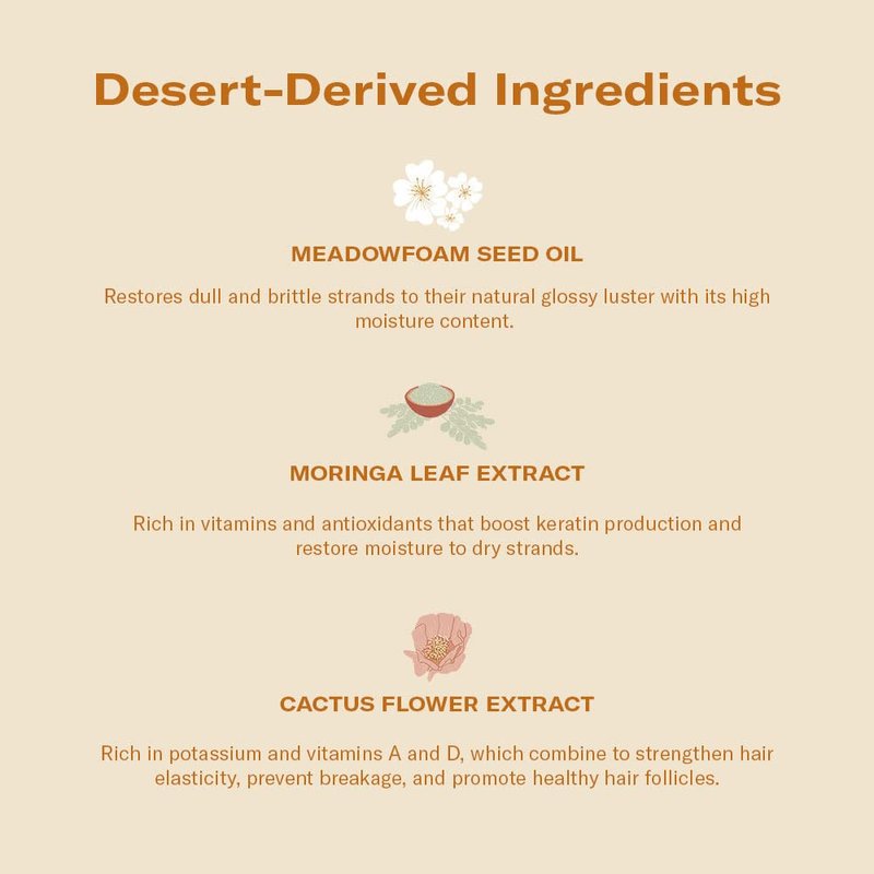 - KEY INGREDIENTS - Meadowfoam Seed Oil: Restores natural-looking, glossy luster to dull, brittle strands. Cactus Flower Extract: Prevents breakage with a rich supply of potassium & vitamins. Moringa Leaf Extract: Boosts keratin & restores moisture with high levels of vitamins & antioxidants."