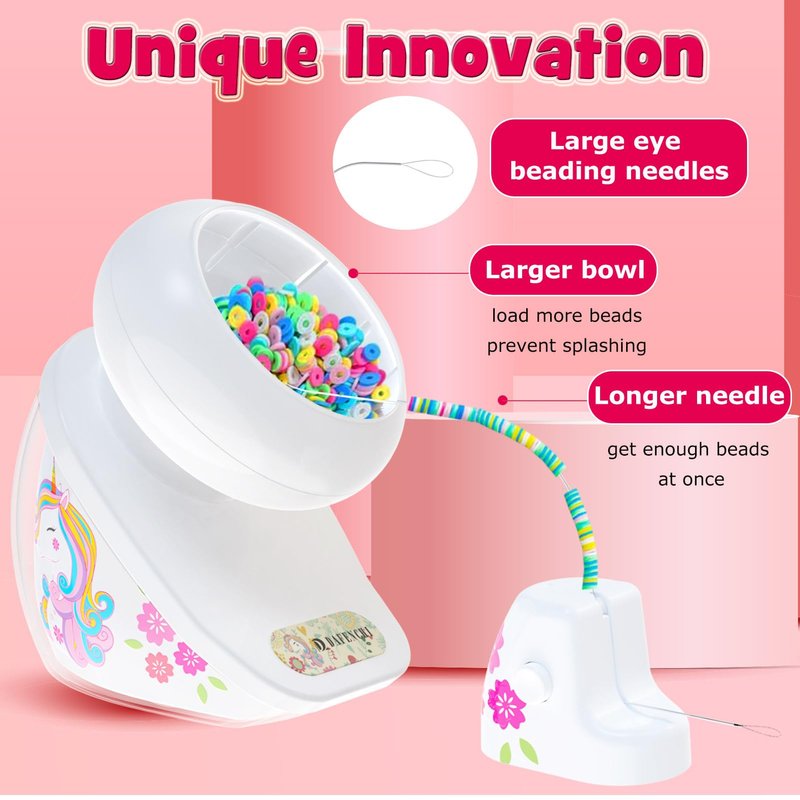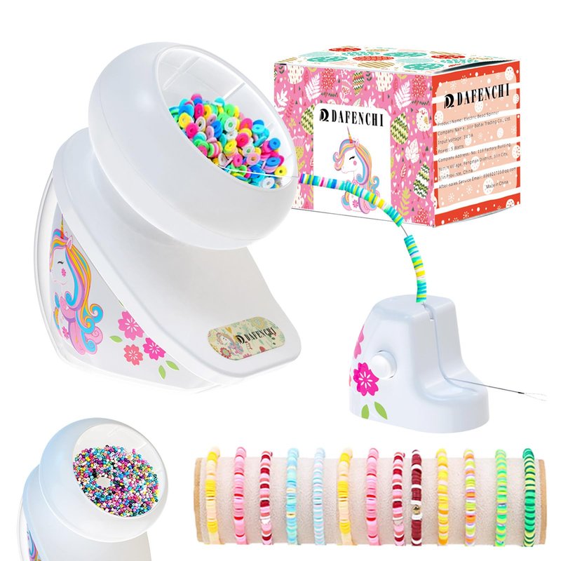 DAFENCHI Bead Spinner with Unicorn Pattern, Clay Bead Spinner for Jewelry Making, Electric Bead Spinner for Making Friendship Bracelets, Bracelet Maker for Clay Beads & Seed Beads, Gift Idea for Girls