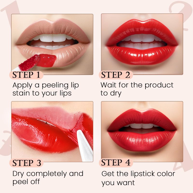 - WATERPROOF AND LONG LASTING: Peel off lip stain has good colour development, transfer poor,waterproof and non-sticky.Whether you are eating or drinking, it will stay on your lips. It can keep your natural lip colour for a long time and increase your glamour.