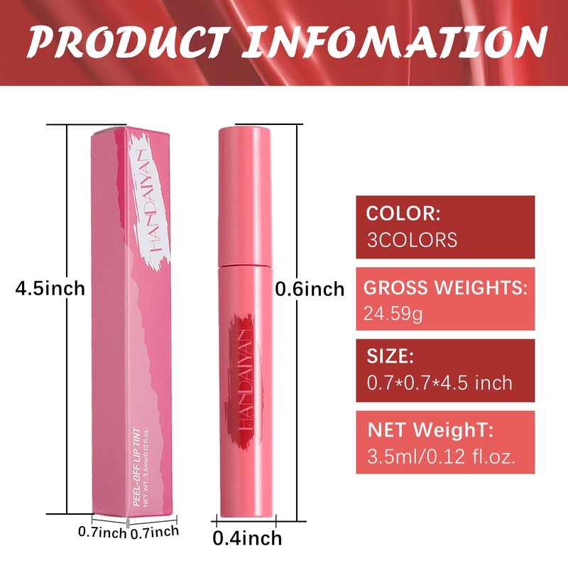- EASY TO USE: This peel off lip stain is convenient to use. Before applying, keep your lips clean and dry, then apply the lip tint to your lips. Let it dry for at least 5 minutes, and if you want to achieve an ultra long-lasting lip makeup effect, you need to wait for 20 minutes. After drying, you can peel off the film. Showing a beautiful lip color.