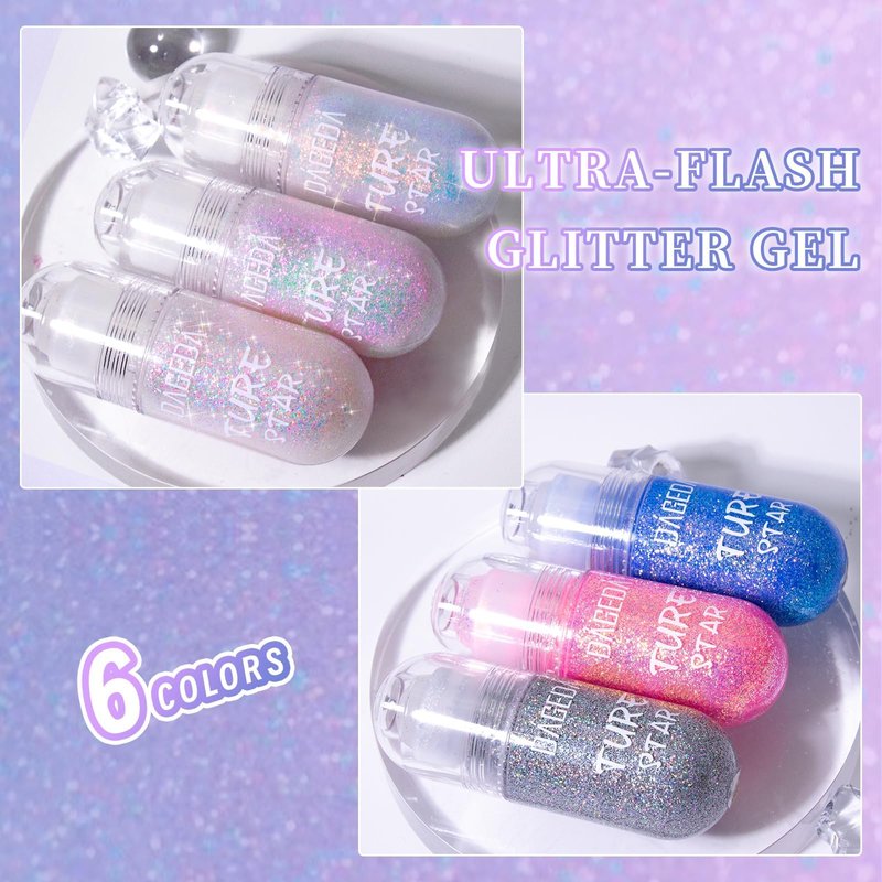 - 【Easy to Use】Body glitter gel is made from super sparkly glitter, while applying the glitter gel is smooth and fluid, so you can use it as a face glitter with confidence.It dries quickly and maintains mermaid glitter makeup all day and can be removed using water.