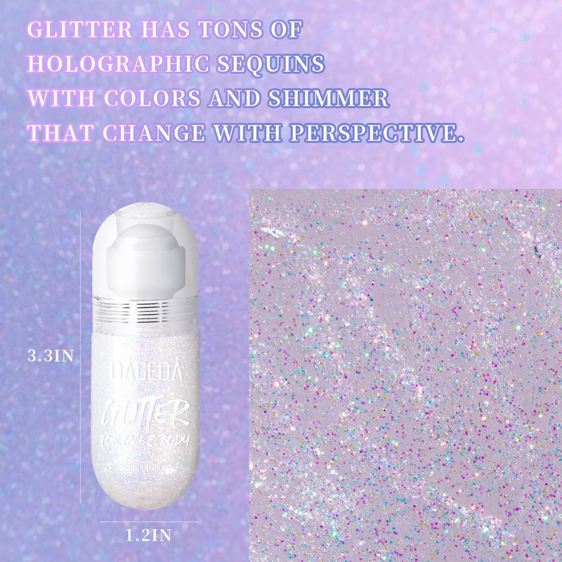 DAGEDA Body Glitter Gel, Roll-on Face Glitter for Mermaid Makeup Festival Rave Accessories, Holographic Hair Glitter Gel,Body Shimmer Halloween Makeup for Rave Party (Dazzle)