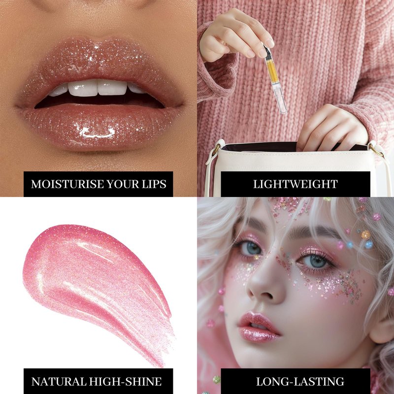 - SPARKLE GLOSSY FINISH LIP GLOSS: What makes this lip oil stand out is that it has a glossy and shimmery effect. Upon application, your lips will take on a dazzling color for an eye-catching lip look. It makes your makeup stand out from the crowd, bring a whole day good mood.