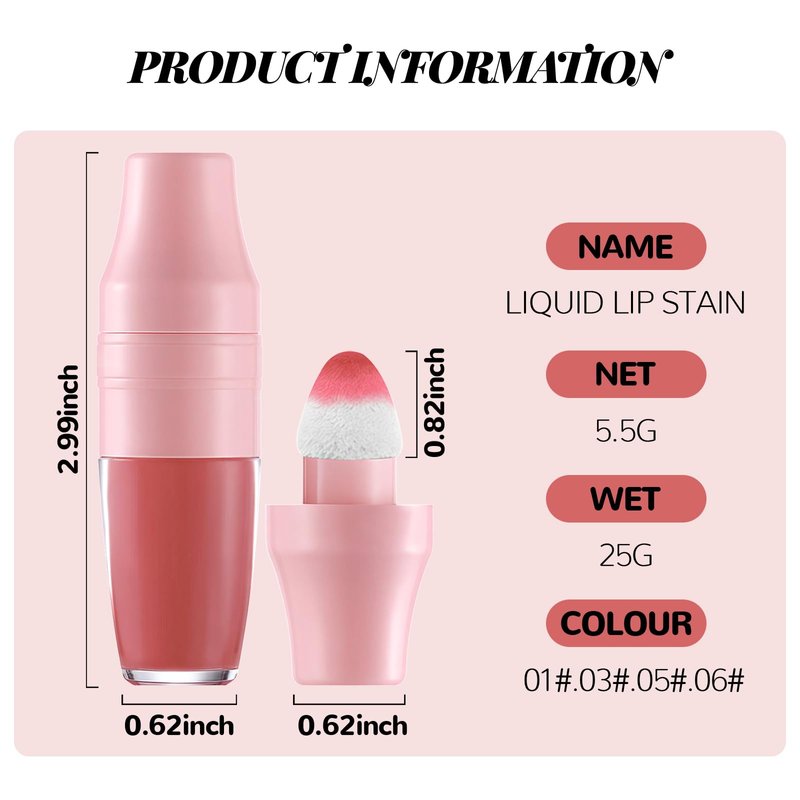 - Dual Use:This liquid lipstick has a delicate texture and leaves a soft sheen. The interesting sponge head design can also be used as a liquid blush, and using the brush head allows the liquid to blend perfectly with the skin to create a natural blush look.