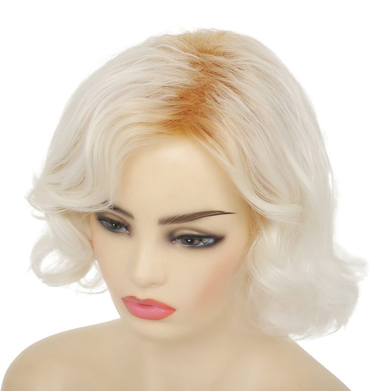 Dai Cloud Blonde Short Wig Women Ombre Light Blonde Curly Bob Wigs Old Lady Dark Root Hair Side Part Wigs for Women Cosplay Party Daily(Platinum Blonde)