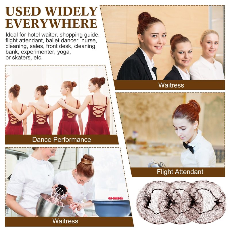 - Versatile and Practical: The mesh hair accessories set is suitable for many activities and professions such as dancing, cooking, weddings, horse riding, ballet, gymnastics, flight attendants, chefs, actors, nurses, bank clerks, hotel staff, restaurant staff or ice skaters