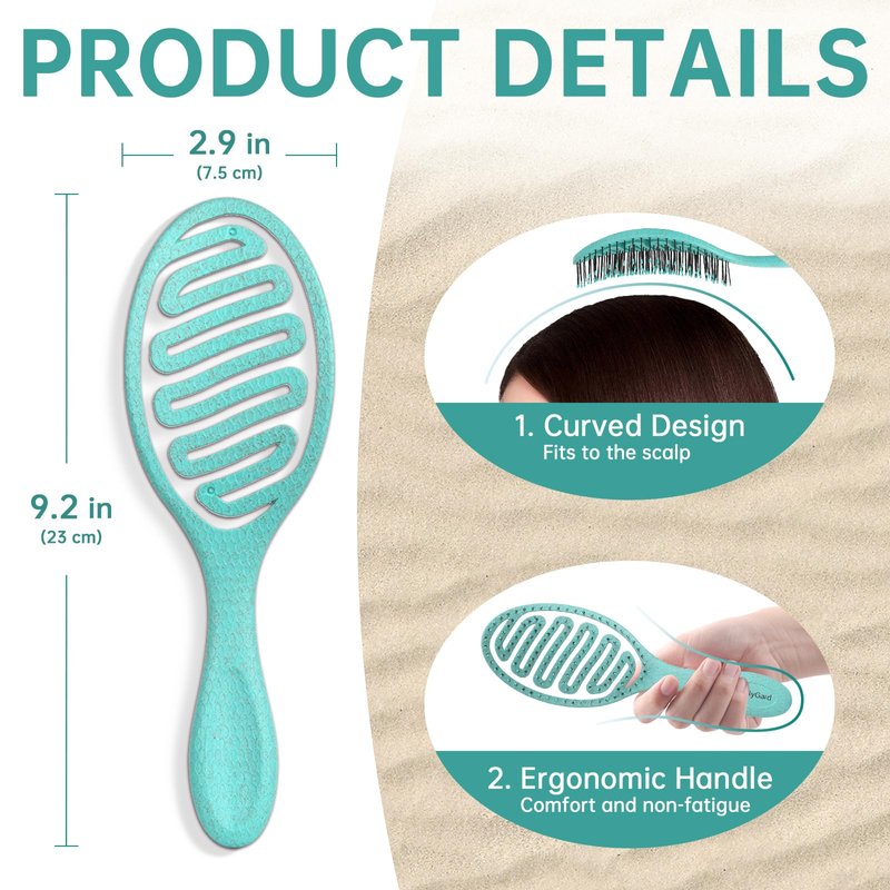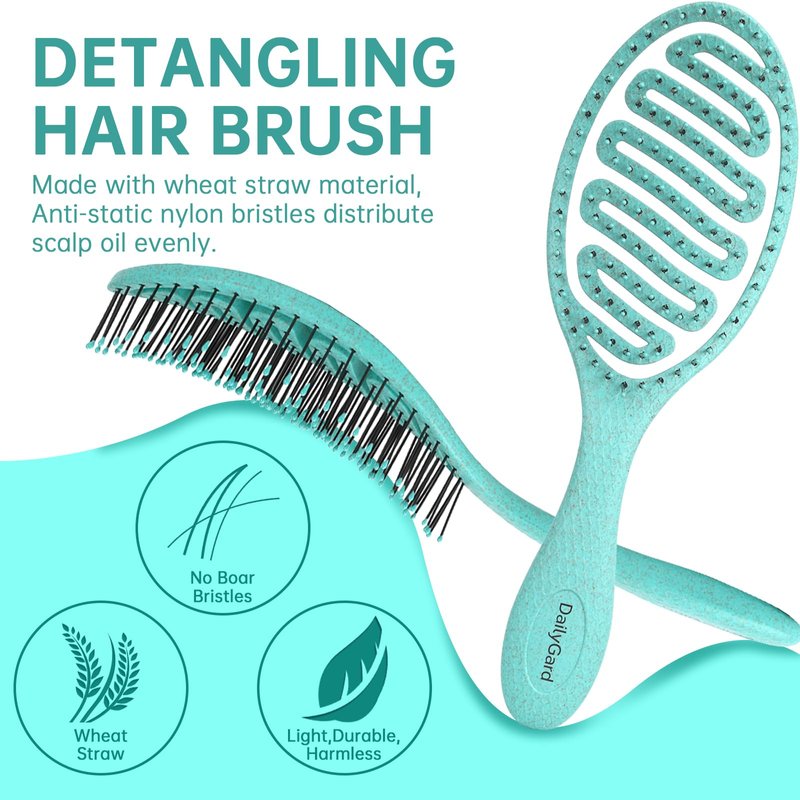 - [BIO-FRIENDLY AND RECYCLABLE]: Comb is made of high quality plastic and wheat straw, non-toxic, harmless and 100% safe. Our natural detangling hair brush is a sensible and environmentally friendly option for your daily hair care.