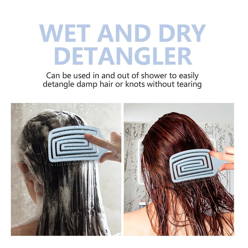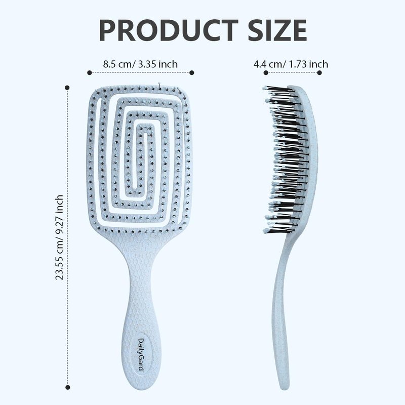 - [HIGH QUALITY]: Comb is made of high quality plastic, wheat straw and painless soft nylon bristles, 100% safe and durable. In addition, hair brush detangler can be washed directly with water to easily keep the brush clean.