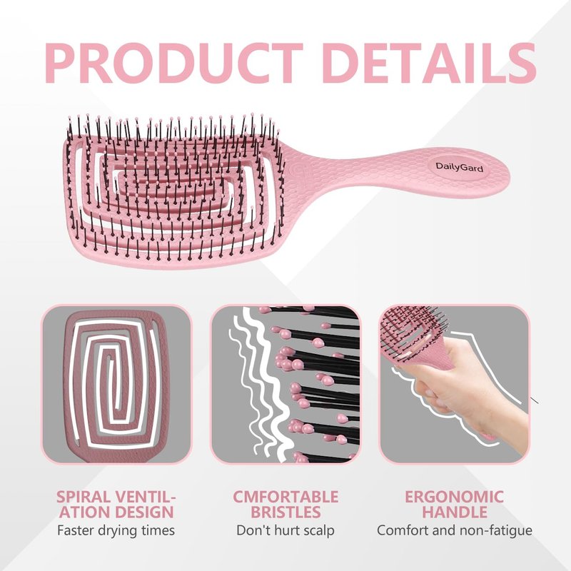 Daily Gard Detangling Brush, Dry and Wet Vented Detangler Hair Brush for Women and Men, Professional Paddle Curved Styling Hairbrush for Straight/Curly/Thick/Long/Wavy/Damaged Hair, Pink