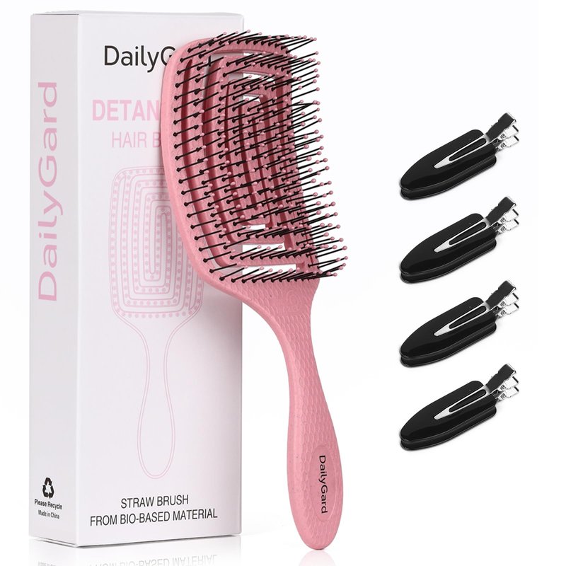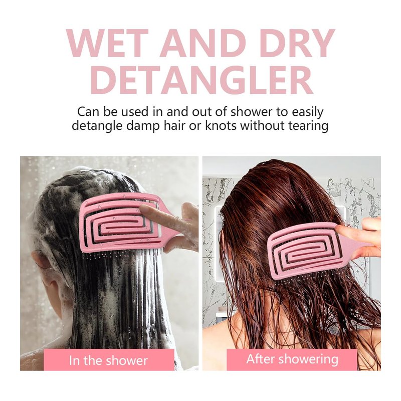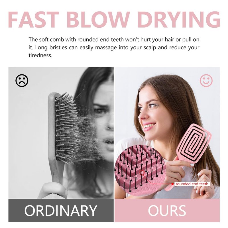 - [HIGH QUALITY]: Comb is made of high quality plastic, wheat straw and painless soft nylon bristles, 100% safe and durable. In addition, hair brush detangler can be washed directly with water to easily keep the brush clean.