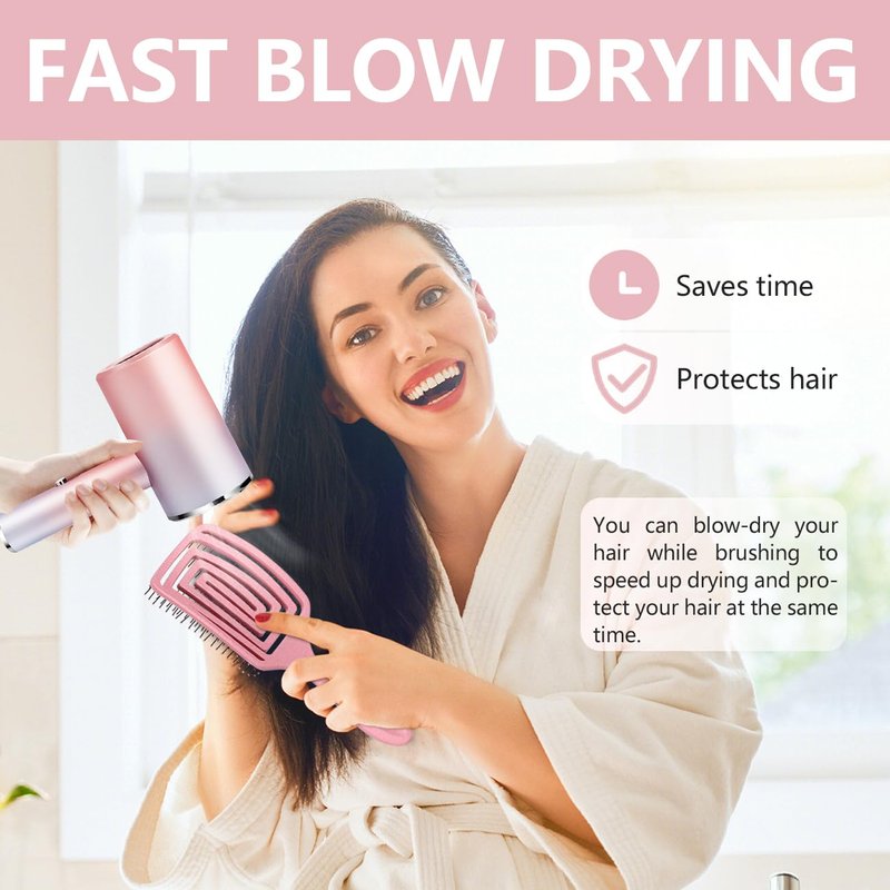 Daily Gard Speed Dry Hair Brush Professional Curved Vented Brush with Ergonomic Handle Detangling Wet and Dry Brush for Men, Women and All Hair Types,Pink