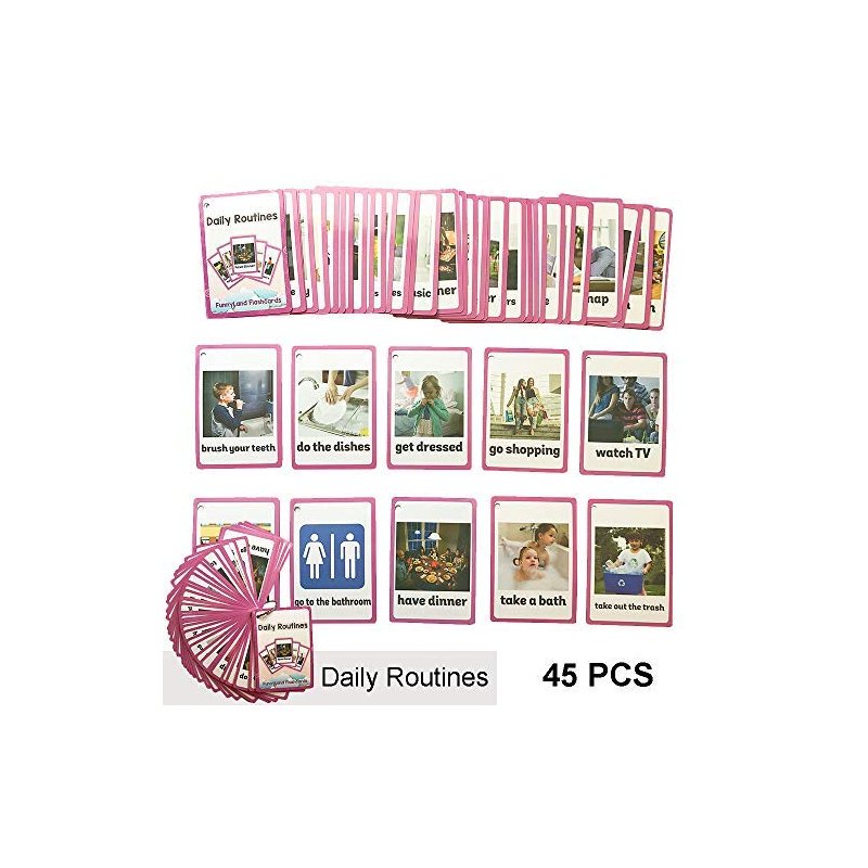 - 【INCLUDED】44 cards of Daily Routines ; 26 cards of Gestures;Total 70 Pcs/set. These kids learning English Words flash cards Suitable for toddlers 2-4 years old.