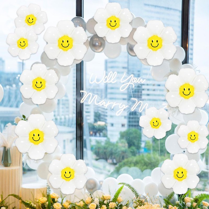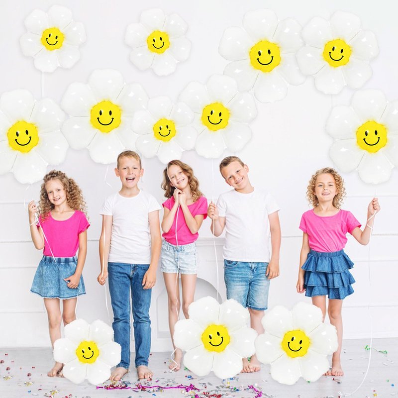 - Easy to Inflate: You just need to fill the daisy foil balloons with 80-90% air or helium to prevent the balloons from popping due to over-inflation. Once inflated, the balloons will automatically seal. You can place them anywhere you like or tie a ribbon to make these daisy smiley face balloons float. Fill your party with fun and smiles!