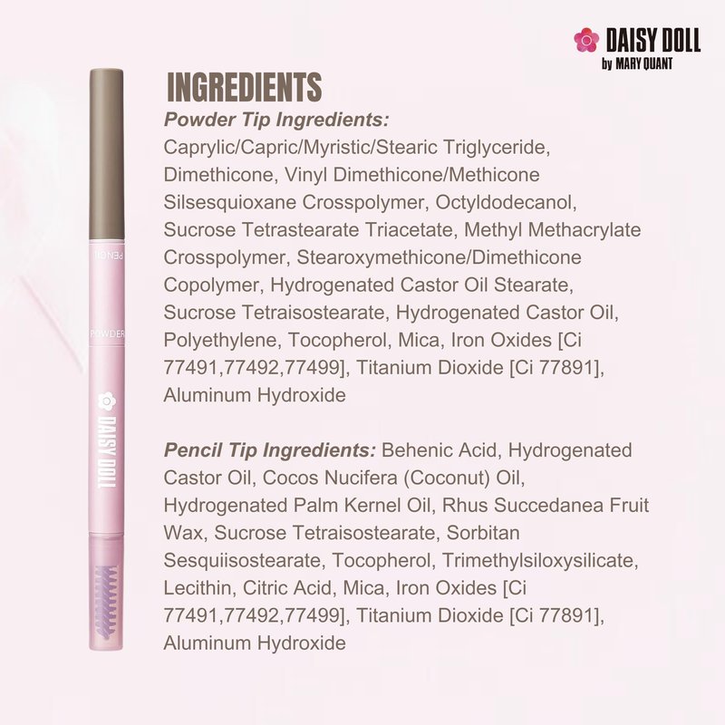 - 【3-in-1 Eyebrow Liner Kit】A 3-in-1 eyebrow liner that combines a pencil, powder, and a brush all in one! Perfect soft natural eyebrow makeup with Daisy Doll by Mary Quant from Japan.