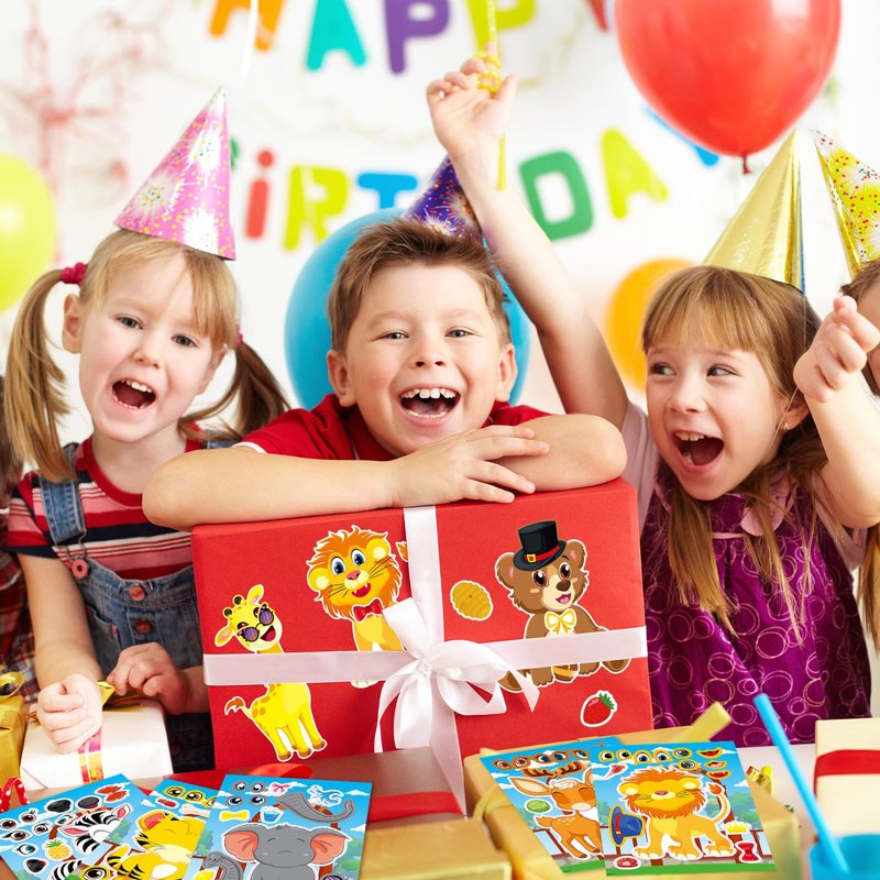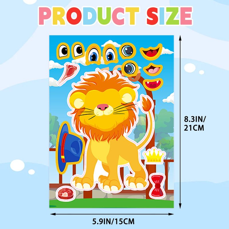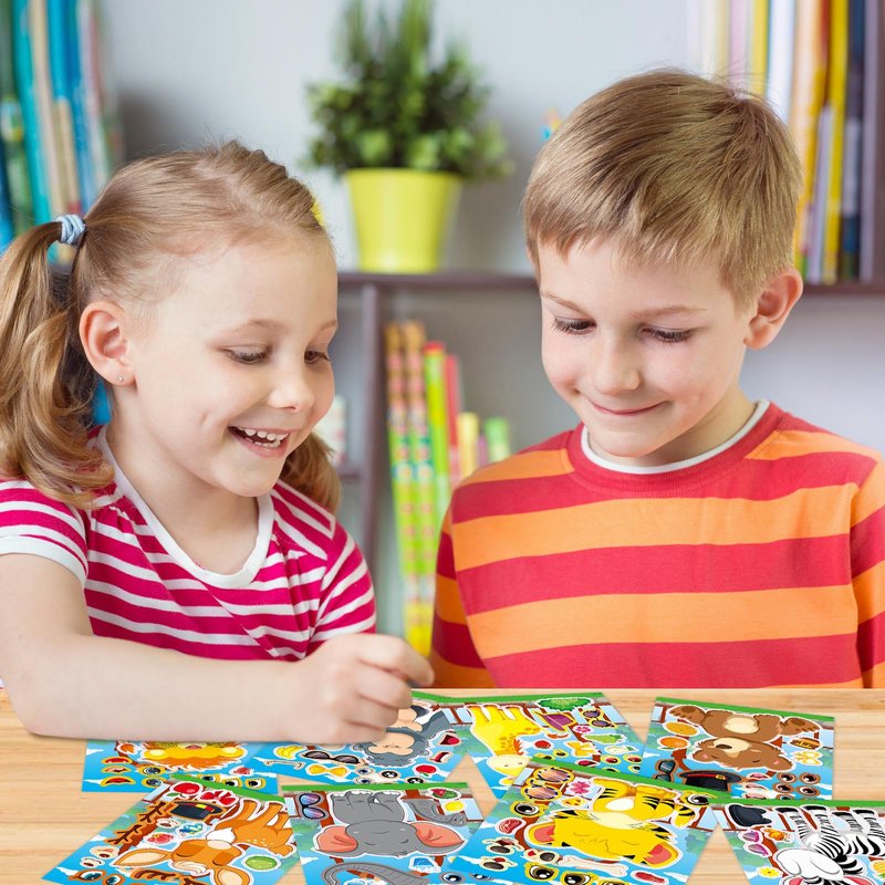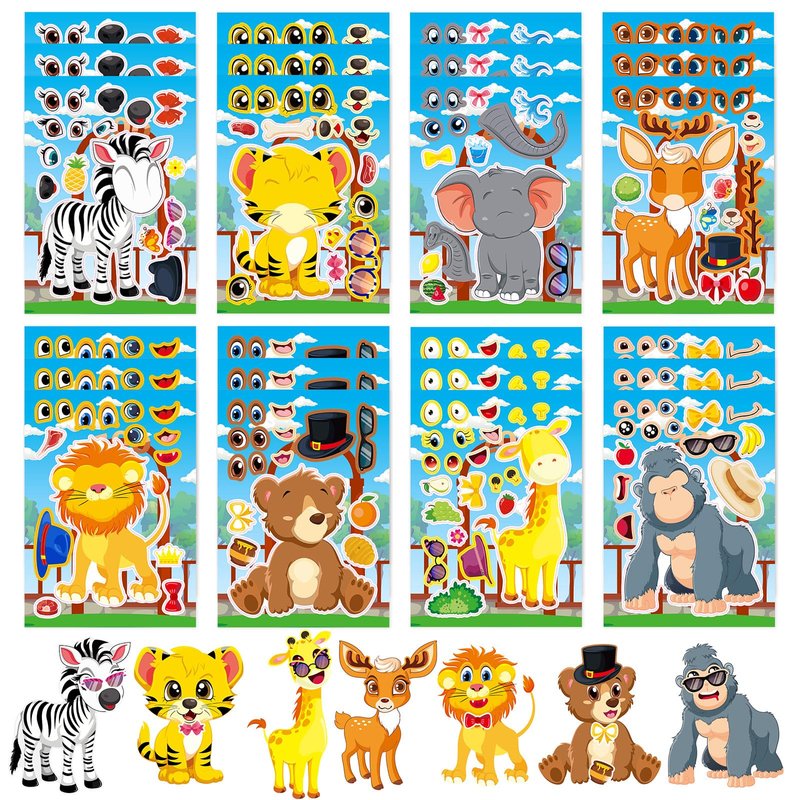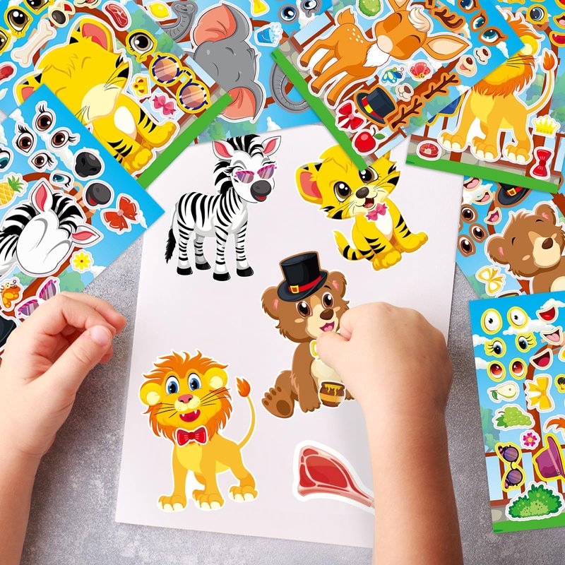 DaiUni 24 Sheets Safari Animals Make a Face Sticker Sheets for Kids Todders Activities, Make Your Own Stickers for Kids Birthday Party Favor Supplies Craft