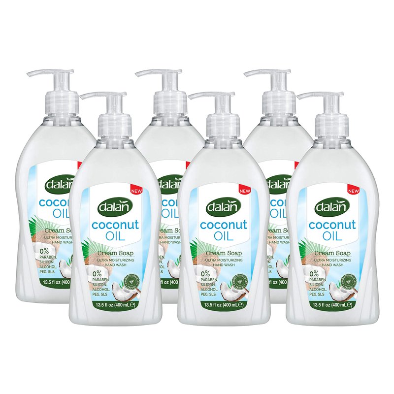Dalan Coconut Oil Cream Ultra Moisturizing Liquid Hand Soap for Normal and Dry Hands Fresh Clean and Soft Feeling (13.5 Fl Oz / 400 mL (Pack of 6))