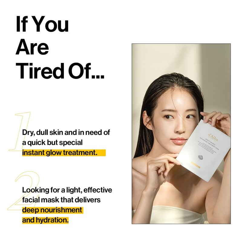 d'alba Piedmont Italian White Truffle Nourishing Mask, Vegan Skincare, Nourishing Sheet Mask for Dry and Tired Skin, Deep Hydration Mask, Korean Skin Care