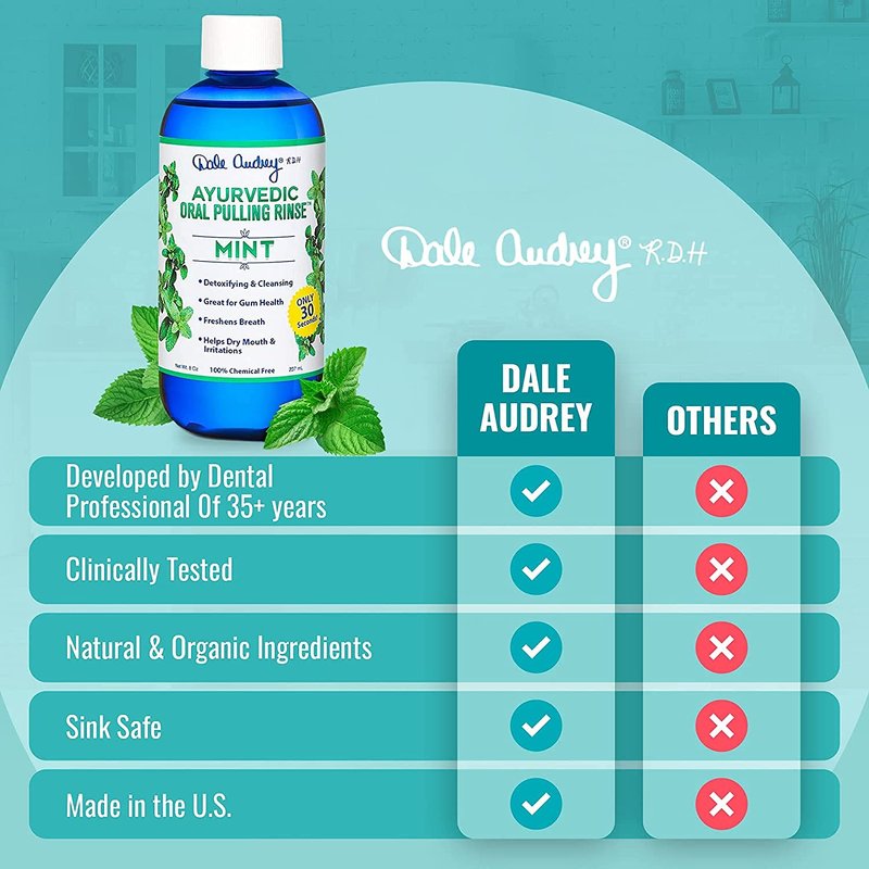- Dale Audrey Ayurvedic Oral Pulling Rinse combines ancient philosophy with today's natural science. This unique formula is a perfect blend of oil, vitamins and herbs that will leave your breath, teeth and gums invigorated for hours