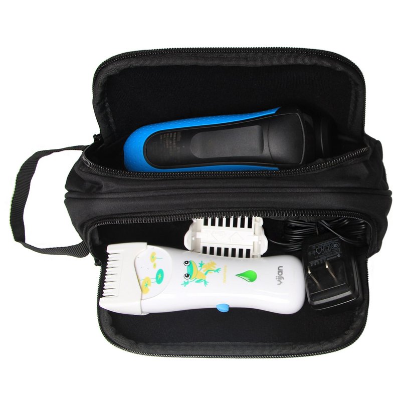 - SPACIOUS ENOUGH: Two compartments to store your electronic shavers, hair trimmer set and clipper oil, 2 extra mesh pockets for other attachments, like nose hair trimmer, guards, cleaning brush, etc..