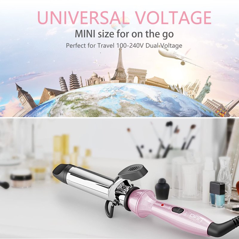 DAN Technology Travel Mini Curling Iron, Dual Voltage Curling Iron up to 450°F for Short Hair,Nano - Titanium Barrels & 30s PTC Fast Heating…