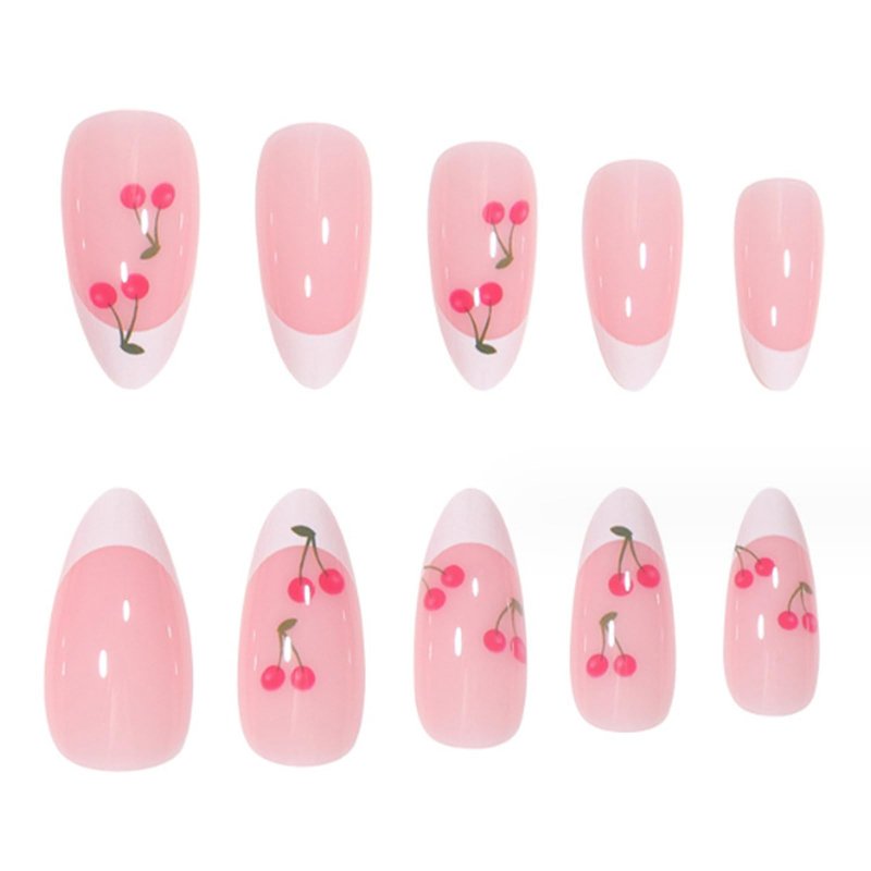 - 【Minimal installation】False nails with cherry designs just choose the nail piece that suits you, polish the nail bed, paste the jelly glue we give away, and press trendy nails for 30s to get the natural manicure that girls like. Due to the limited use of jelly glue, we recommend that you use your own glue