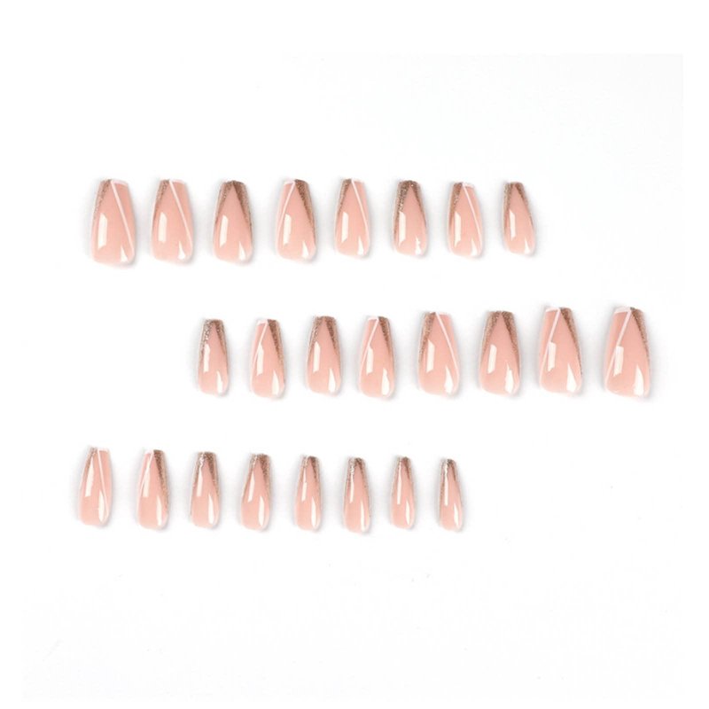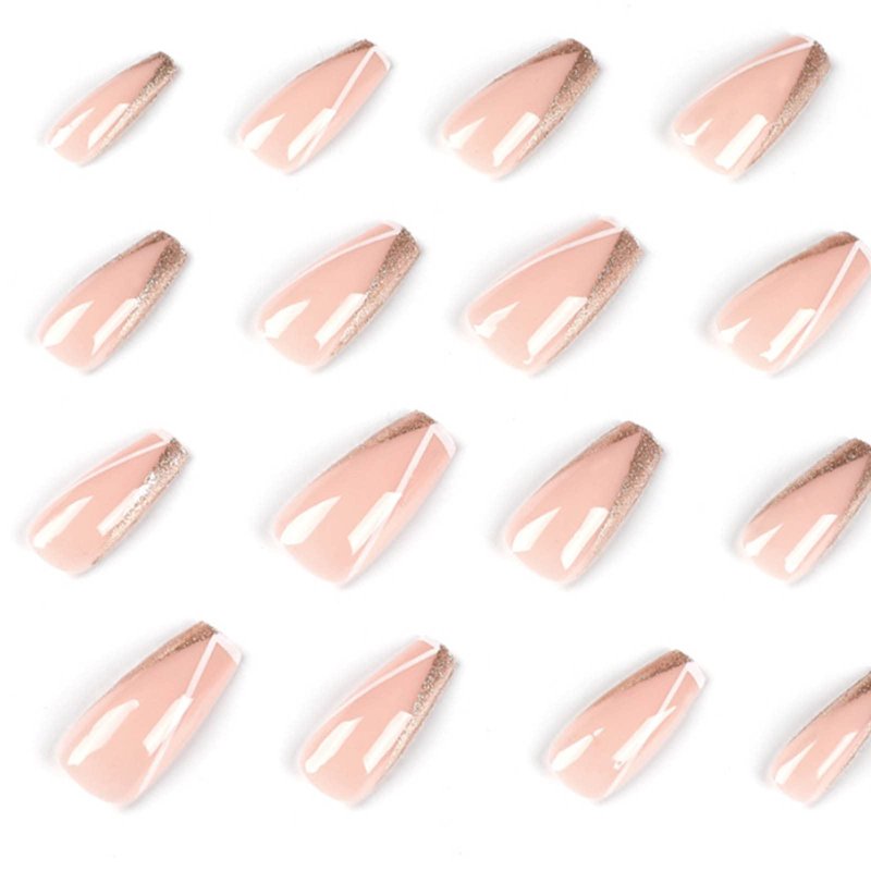DANMANR Long Press on Nails Square French Fake Nails Full Cover Nude Acrylic False Nails for Women and Girls 24PCS (Bling Multicolor)