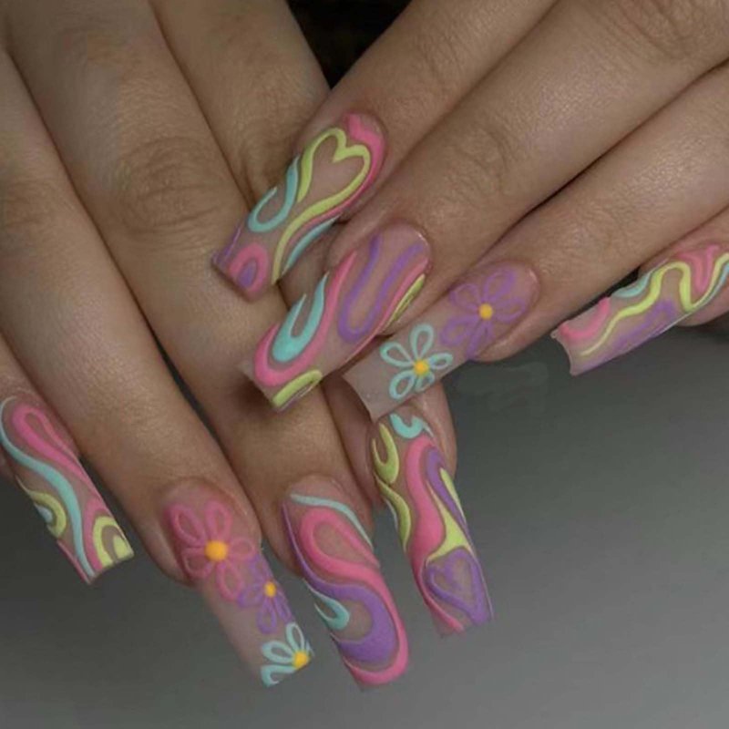 - 【Safe and sturdy material】Long square fake nails made of acrylic ABS, environmentally friendly, not hurting hands, not easy to break