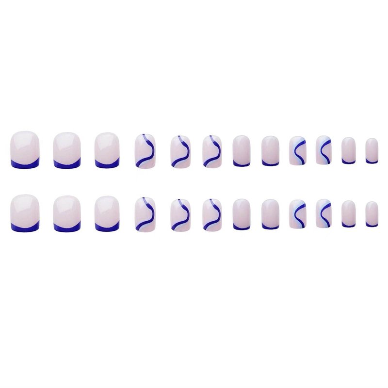 DANMANR Square Press on Nails Short Fake Nails French Acrylic Full Cover False Nails for Women and Girls 24PCS (Blue)