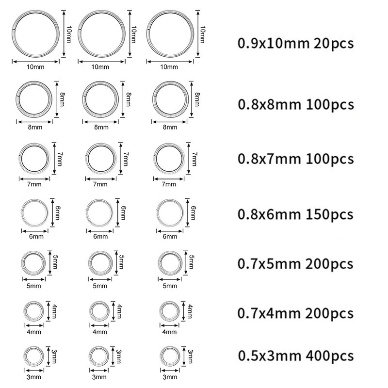 - 【Nail Charms Dangle】 these open jump rings have 7 different sizes, include 3mm, 4 mm, 5 mm, 6 mm, 7 mm, 8 mm, 10 mm, which can meet your diverse demands during jewelry making process.