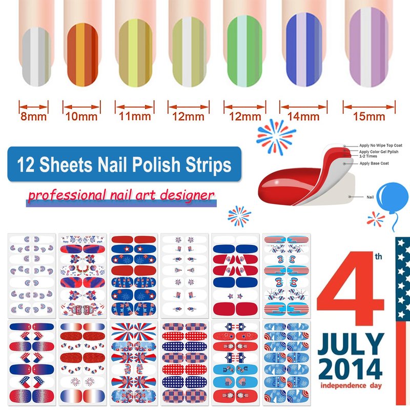 • [Quality & Durable] Our 4th of July nail polish strips made of quality material, safe and odorless, bringing no hurt to your nails, also the full nail strips is durable, not easy to bubble and DON'T REQUIRED UV LIGHT.