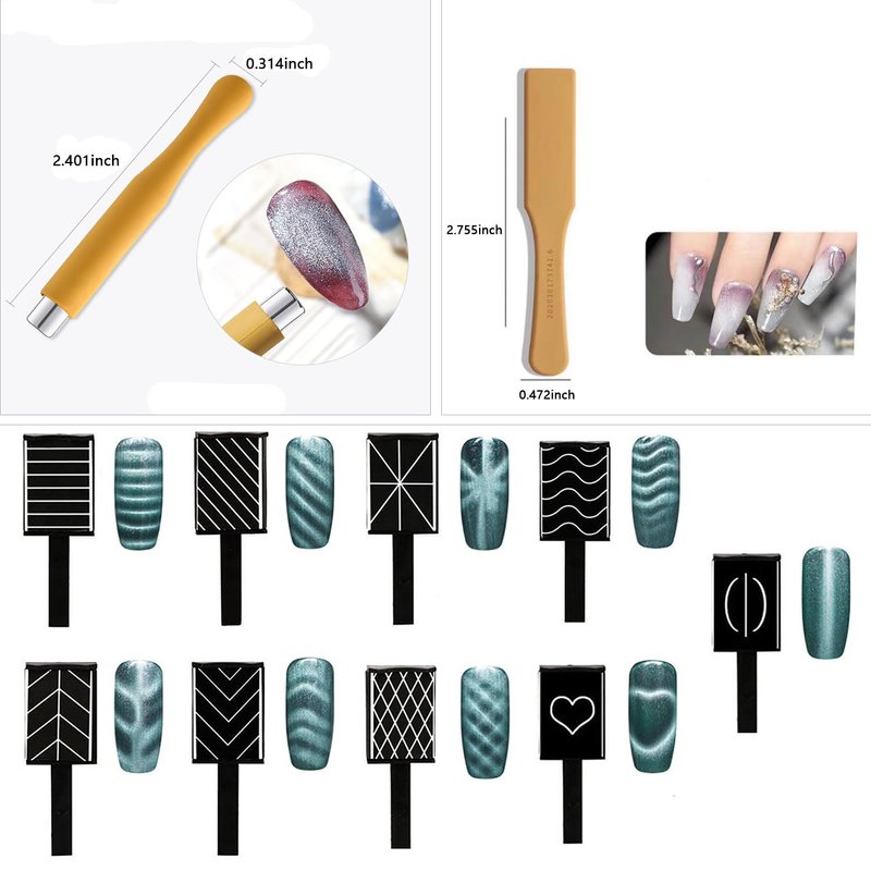 - 【Cat Eye Effect】 -- the strong magnet wand boards can easily attract the particles in the magnetic gel polish and help you easy to get the cat eye effect within 5-10 Seconds, and you can also magnet pens to paint other exquisite design.