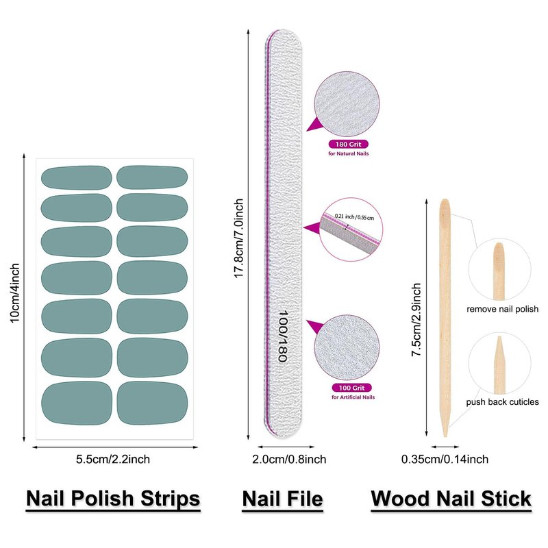 • [Package Included] You will get 24 sheets gel nail strips, each nail strips has 14 pieces nail tips and 7 sizes, to suitable for most people's nail size. the attached nail file and cuticle stick will help you finish the nail work better.