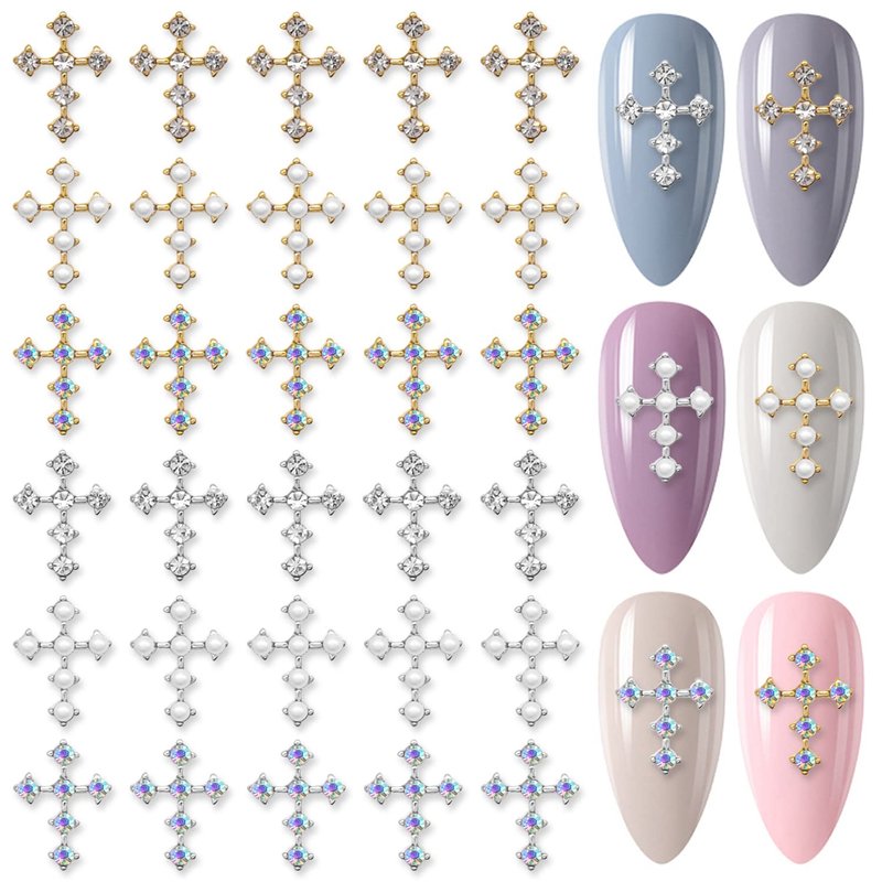 - 【Package Content】 30 pieces cross nail charm, the enough quantity can meet your daily decoration needs and bring you different nail styles and easy to replace, making your nails look more elegant and shiny.