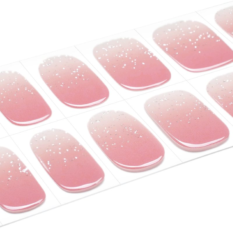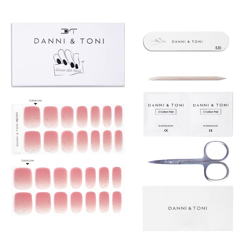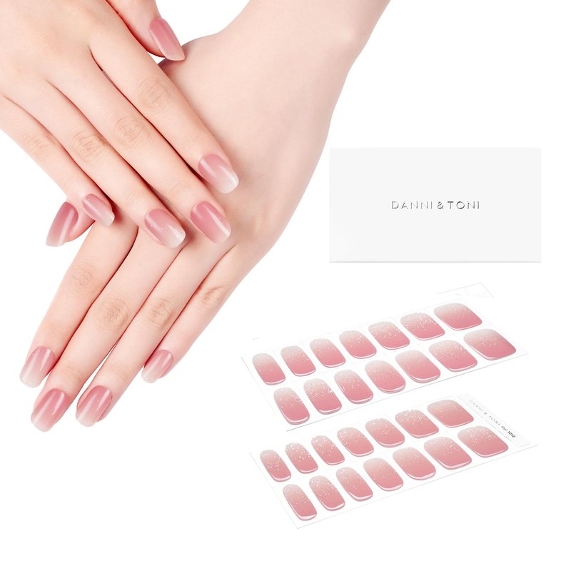 DANNI & TONI Semi Cured Gel Nail Strips Pink Ombre (Rosy Cheeks) French Gel Nail Stickers Glitters Glossy Nail Wraps 28 Stickers