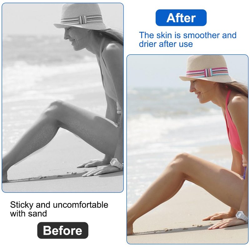 - Easy to use: Fill the sand remover bag with the right amount of talcum powder(Package does not contain talcum powder),tapping the bag to dislodge the powder and brush it over your body to completely remove the sand.With this sand remover baggie, you can avoid taking sand home or in your car.