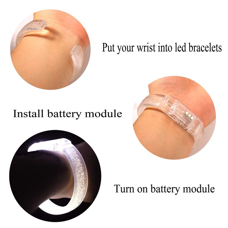 - LASTING FOR LONG TIME- Each LED bracelet lasts up to 8 hours. Can be reused after the party over. Easy to operate, just turn on/off by the module on side.