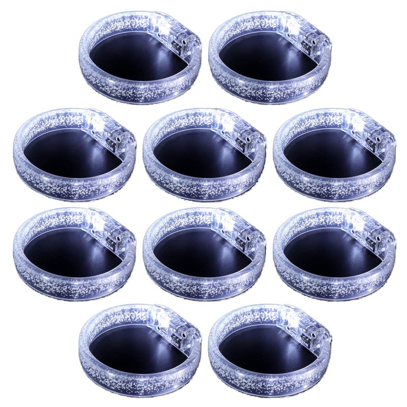 Specifications: Ring Case Color: Clear Size: External diameter7.7cm (2.95"), Internal diameter 6.5cm (2.56") Luminous color: White (No Flash) Quantity: 10 Pack Features: Wonderful party supplies Your just turn on /off by the module, bright lights will bring you a wonderful night and a colorful party. Health and non-toxicBracelets are made of environmentally friendly materials, brand-new durable polypropylene materials, health and environment friendly, safe for children. Great for night eventThe color is noticeable that can offer extra visibility when you are in darkness, and let you have a bright party in dark. WarningKeep away from children under 3 years of age. Do not submerge in water or any liquid.