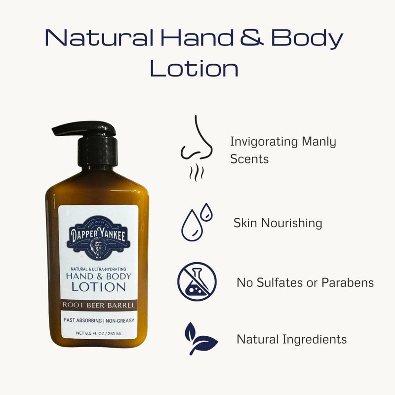 Dapper Yankee Natural Hand & Body Lotion for Men - Root Beer Barrel Scent, Moisturizing, Non-Greasy, Fast Absorbing