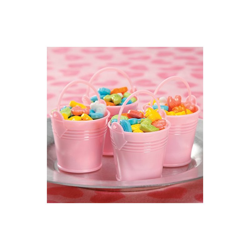 Darice 5538P Plastic Bucket with Handle Party Supplies (12 Pieces), 2.5", Pink (Pack of 6)