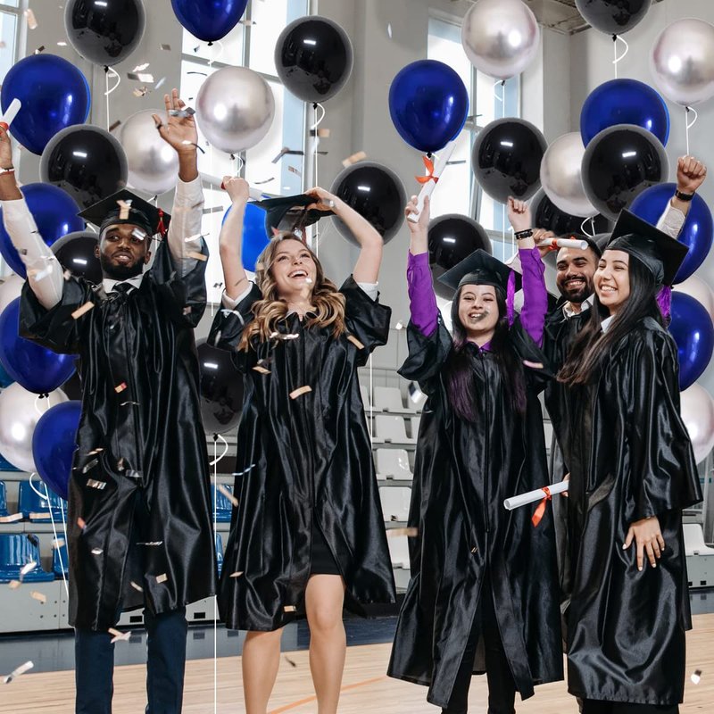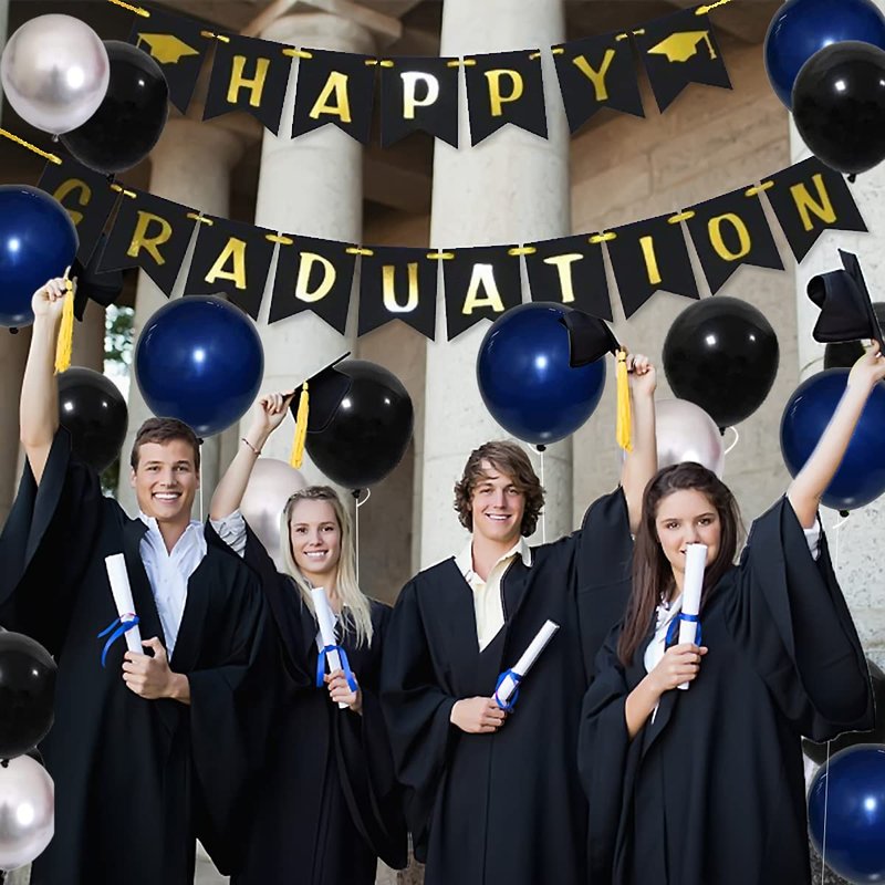 These navy blue black balloons, metallic silver balloons are very adorable and wonderful ornaments to attract people's attention, they can be served as adorable and beautiful photo backgrounds and props for you taking some beautiful photos with your friends, it will creat a cheerful and happy atmosphere. let's enjoy navy blue graduation 2023 party feast!