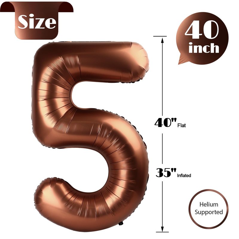 - 【Radiant Dark Brown Elegance】The birthday number balloon feature a vibrant, luminous dark brown hue that exudes timeless elegance and creates an enchanting focal point at birthday parties. Their gleaming opulence bathes your event in warm, lavish ambiance, ensuring they become an indelible part of your cherished dark brown memories. Elevate your occasion with these dazzling 5 birthday balloon, perfect for birthdays and anniversaries, that deserve a touch of resplendent brilliance.