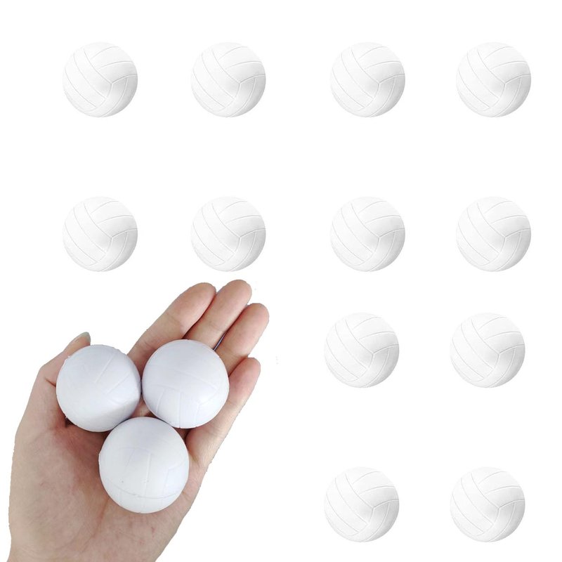 Mini Volleyball White Stress Balls Foam Stress Ball Soft Sports Small Volleyball for Party Supplies/Carnival/Reward/Sports Games/Gifts/Stocking Stuffers Specifications: Material:PU foam Diameter: 1.6 inches Color: White Feature: 1---Novelty and vivid, funny and playful, portable and lightweight, nice for boys and girls. 2---to help you relieve stress or anxiety, to keep your brain focused,stay calm and increase concentration, let you release from busy and boring work. 3---A nice gifts for Christmas stocking stuffers, Easter egg fillers, baby shower, carnival, school party, party favors, teacher rewards. Package includes: 12 x Mini foam volleyballs
