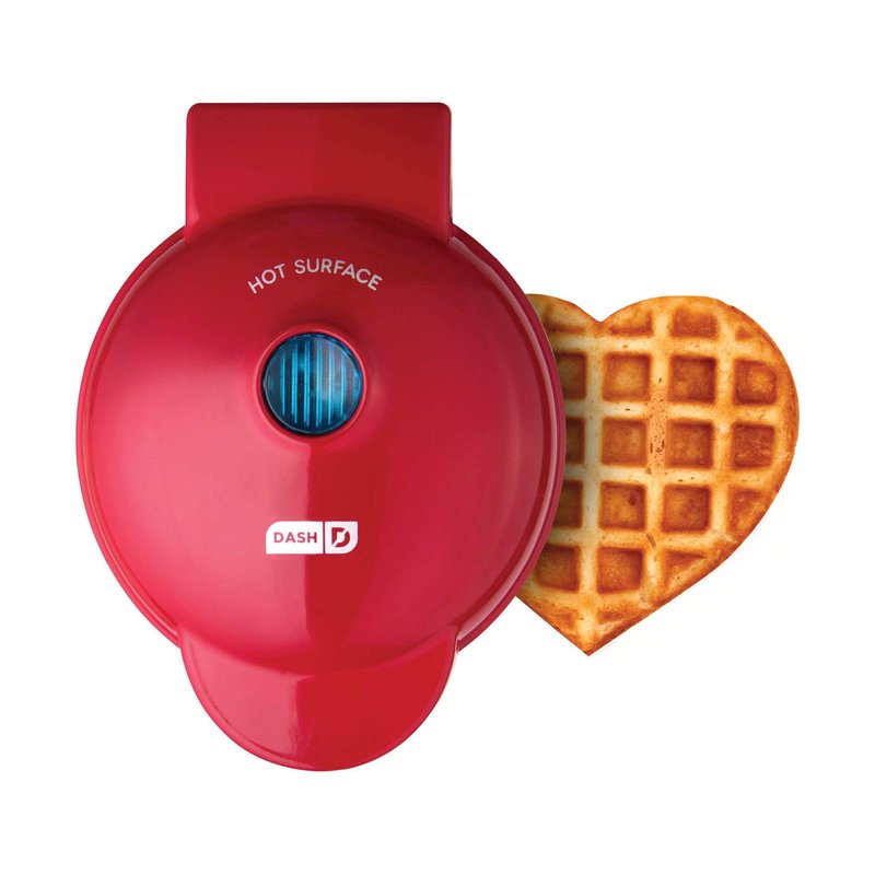 DASH Mini Waffle Maker Machine for Individuals, Paninis, Hash Browns, & Other On the Go Breakfast, Lunch, or Snacks, with Easy to Clean, Non-Stick Sides, Red Heart 4 Inch