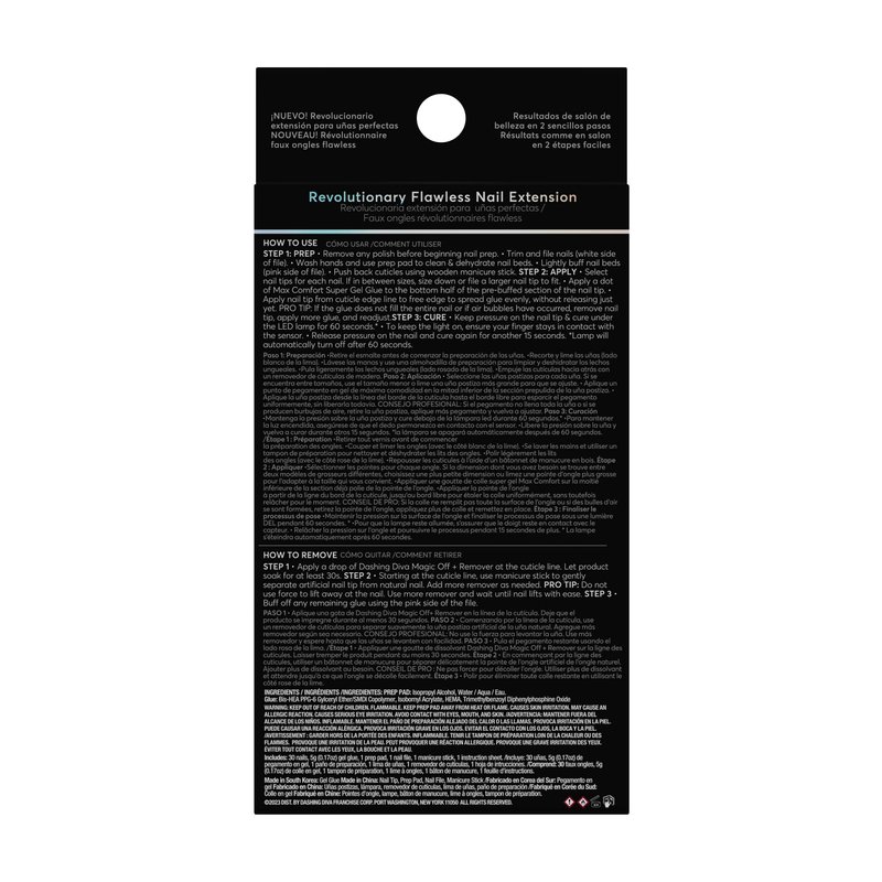 "A true ready-to-wear LED nail extension, designed with pro-level nail art for an instant, salon-like result. Achieve length, art, and salon-strength with a superior 14-day wear—in just two simple steps. Best results achieved when used with Dashing Diva GelXtend Max Comfort Super Gel Glue and LED Lamp. "