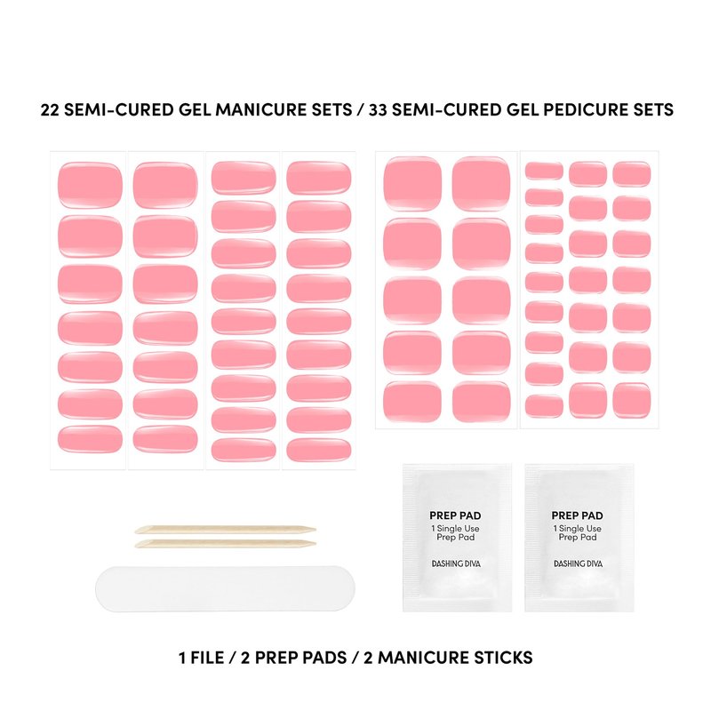 Dashing Diva Glaze Mani Pedi Kit - The Lolli Lolli - Comes with LED Nail Lamp - Long Lasting, Semicured Gel Nail Strips for Toes & Hands