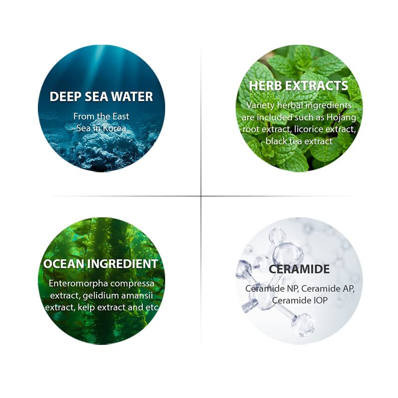 - With DEEP SEA WATER (IONIC MINERAL) & 6 NATURAL HERB INGREDIENTS, it balances the skin and helps convergence