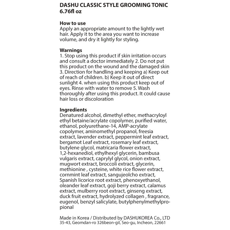 DASHU Classic Style Grooming Tonic - Korean Hair Tonic for Men w/Baobab Seed Oil, Phyto Zein & ABIL ME 45 MB - Lightweight Hair Styling - Volumizing Hair Serum - Scented Hair Scalp Oil (6.76 fl oz)
