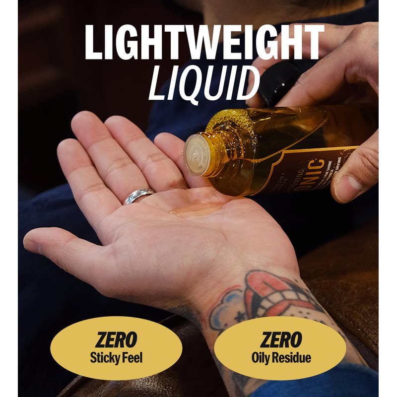 Introducing DASHU Classic Style Grooming Tonic, the exceptional styling solution for the modern gentleman. Crafted with Baobab Seed Oil, this grooming hair tonic expertly balances oil and moisture, delivering a sleek, polished look without the greasy shine. Its lightweight and non-sticky liquid formula enhances fullness, providing a refined and bouncy finish that feels light and dynamic after blow-drying. Infused with Phyto Zein, the volumizing hair tonic ensures deep moisture, keeping your hair soft and smooth without frizz or flyaways.